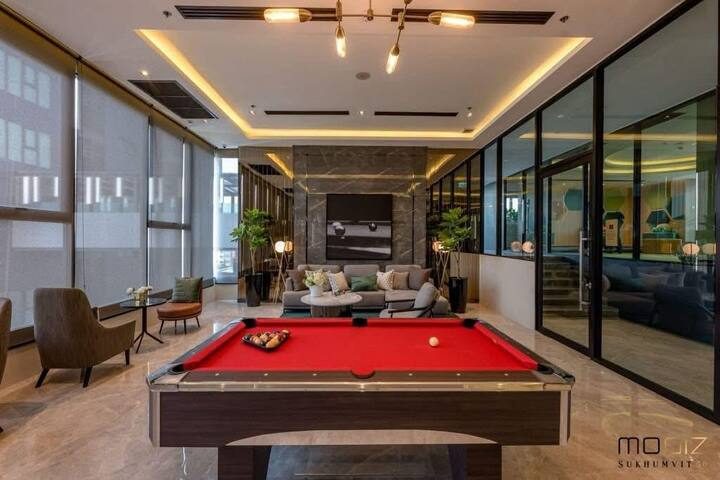 Kick back and relax in this calm, stylish space. perfect place of staycation. right balance for work and relax. great facility and nice view from the room only 5 mins drive to onnut bts. exclude water and eletricity. on avg 4k thb.